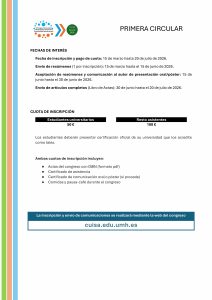 - Envío de resúmenes (1 por inscripción): 15 de marzo – el 15 de junio de 2026